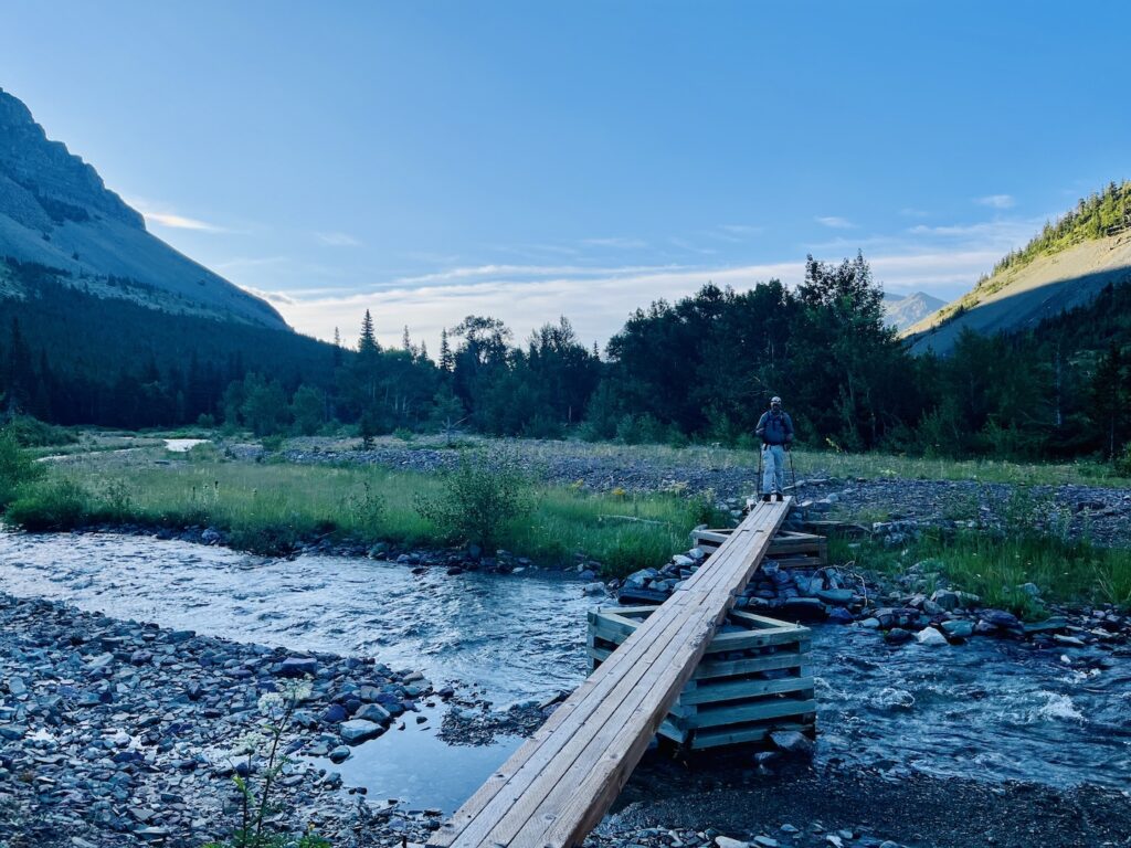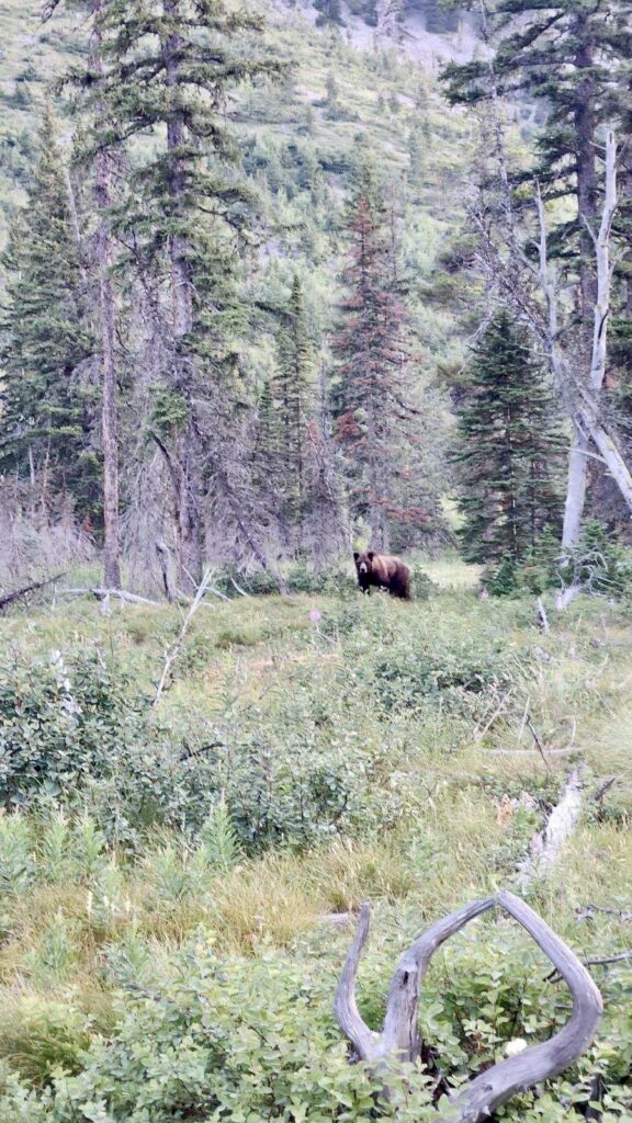 We planned our hike for the next day, waking up before the sun on July 20th. By 5:45 AM, we were on trail…barely. Just minutes in, we heard branches snapping. Loudly. We froze, scanning the trees. And there it was: a grizzly, right on the trail.