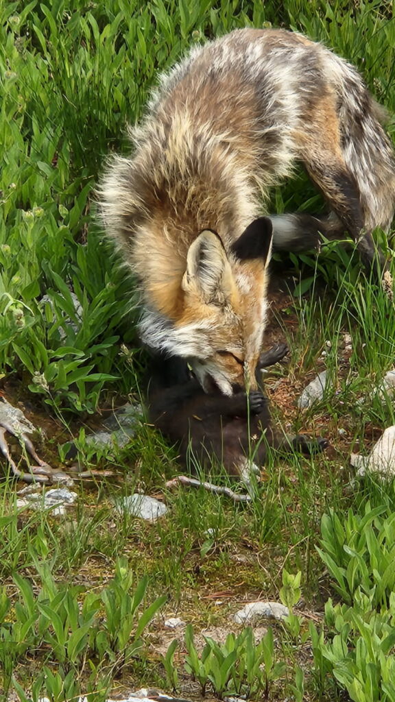 Fox eating a pine marten