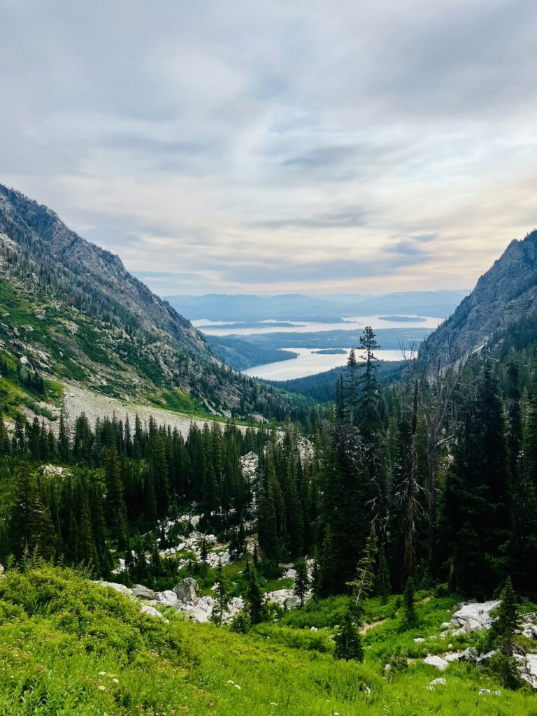 We hit the String Lake Trailhead at 6:22 a.m., packs full and spirits high. The trail began gently, meandering along the lake, but as we entered Paintbrush Canyon, the elevation began to climb. Looking back, we could see views of both String Lake and Jackson Lake behind us.