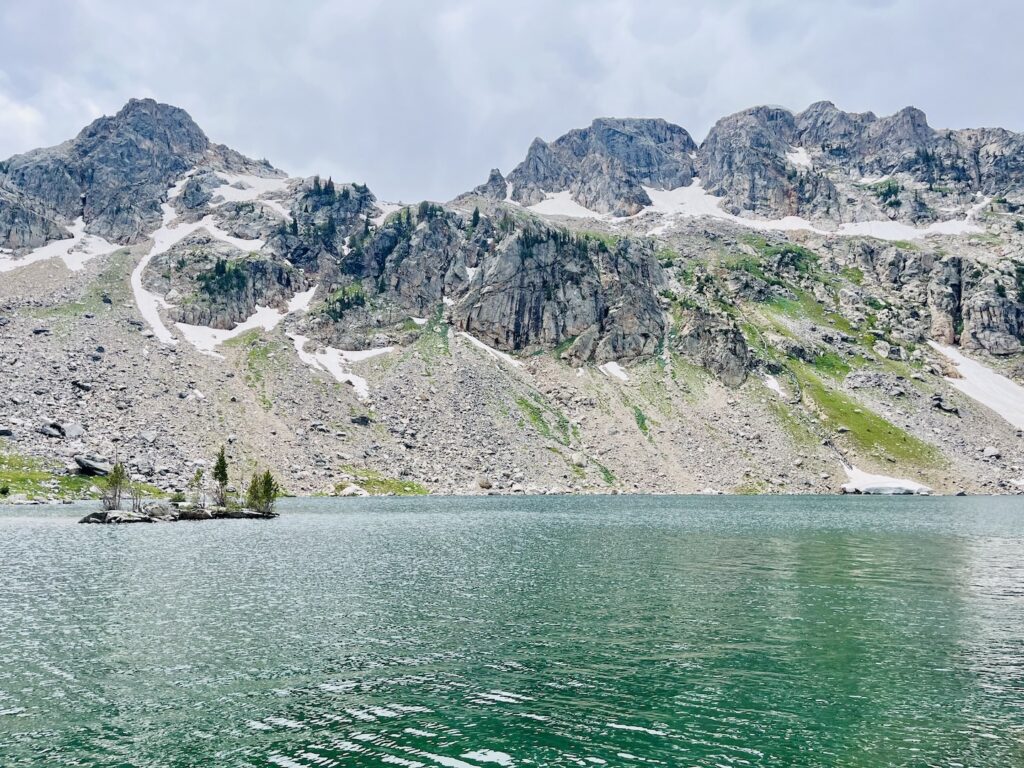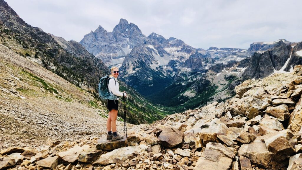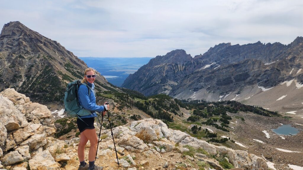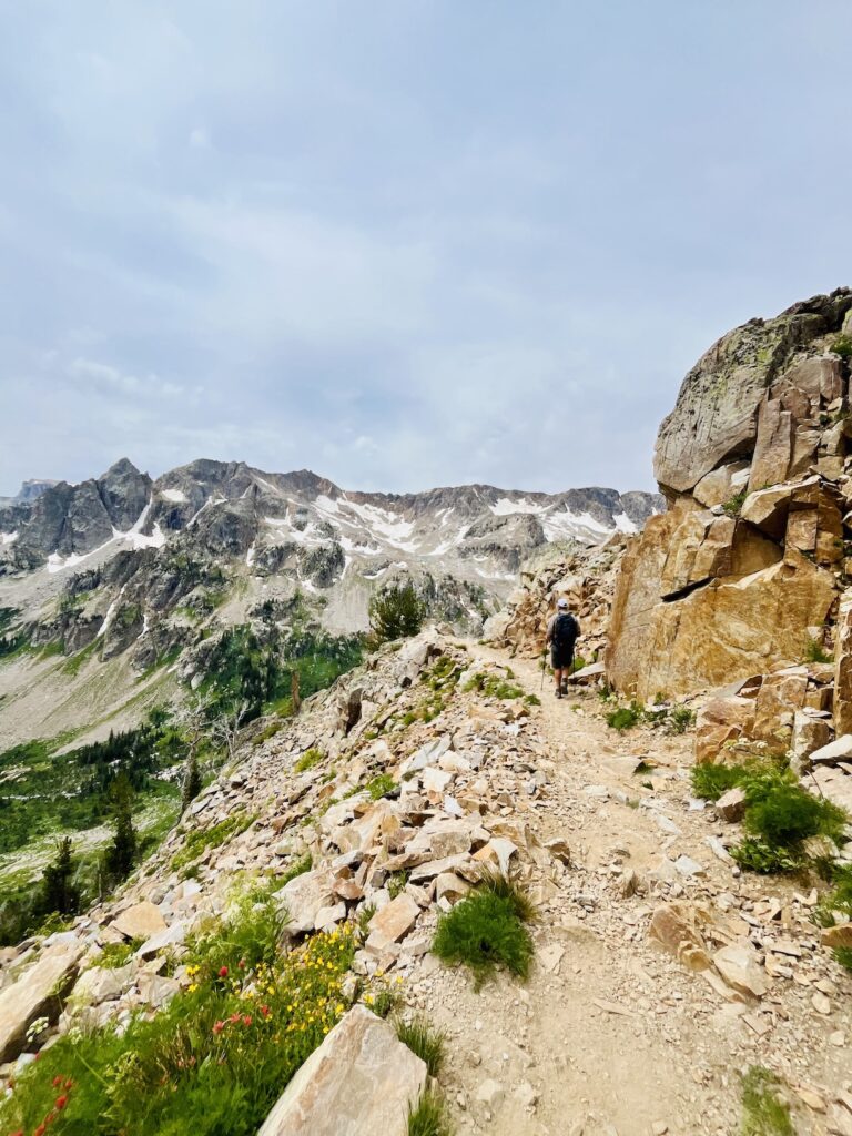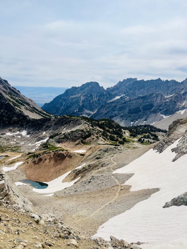 Past Holly Lake, the trail became far more challenging. We powered up steep switchbacks of loose scree and crossed two snowfields before finally reaching Paintbrush Divide at 10,700 feet. It was tough, and at one point, I actually fell near the top. However, the panoramic views of the Teton Range and Paintbrush Canyon made the effort worth it.