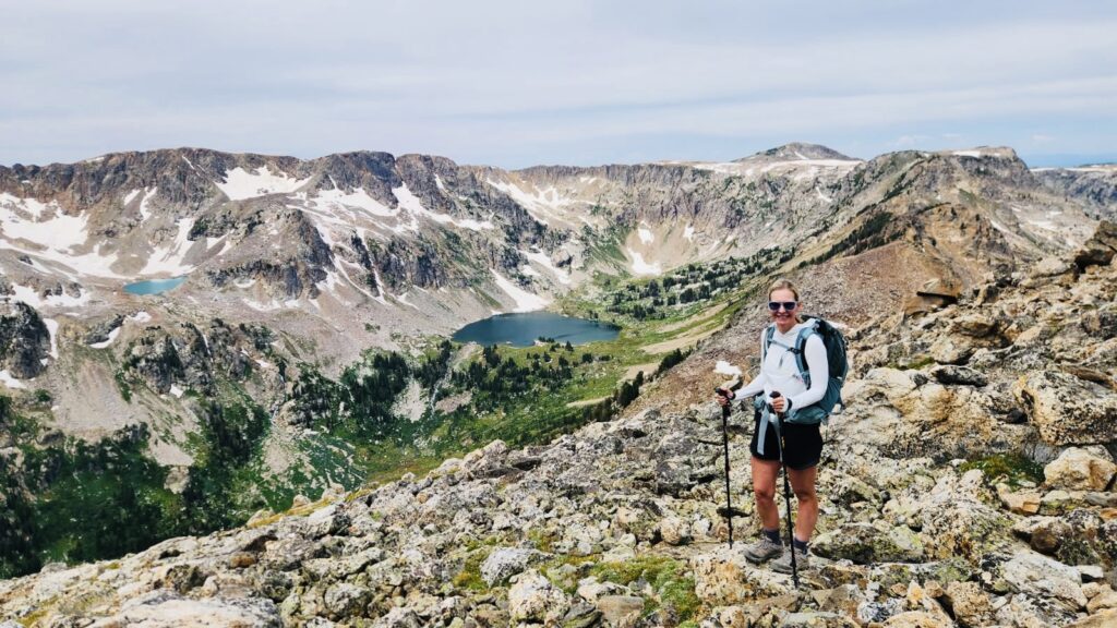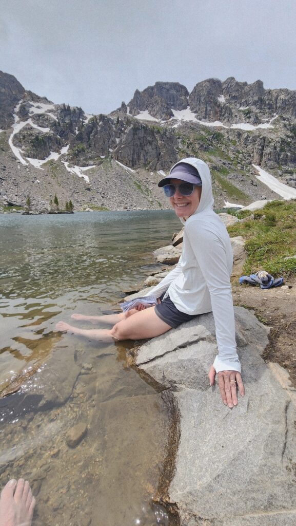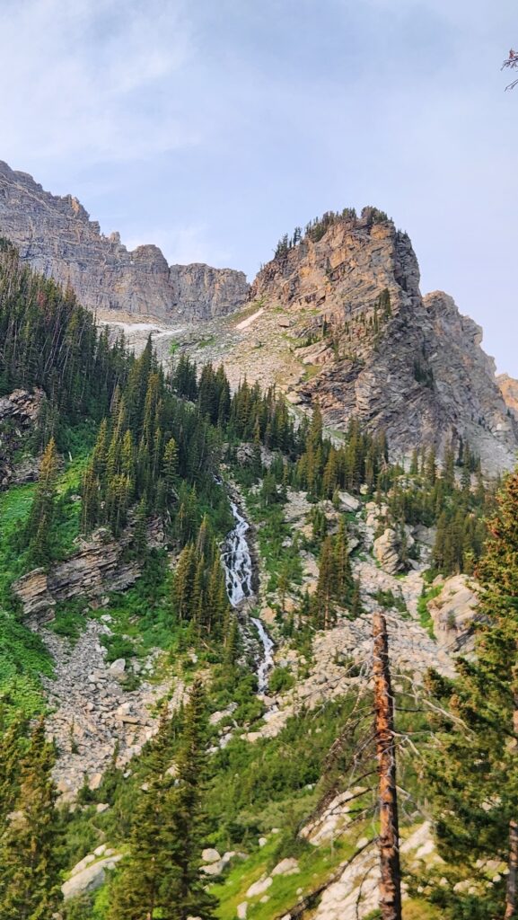 From the divide, we began descending into the North Fork of Cascade Canyon. Waterfalls cascaded down cliffs, and Lake Solitude, cradled by dramatic peaks, appeared like a hidden gem. This view was definitely my favorite part of the hike. We hiked down the switchbacks to the lake, took off our boots, soaked our tired feet, and ate more snacks. At this point, we’d hiked 11 miles with 8 more to go.