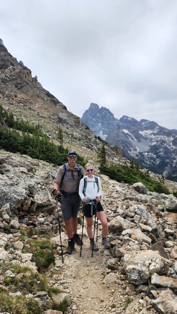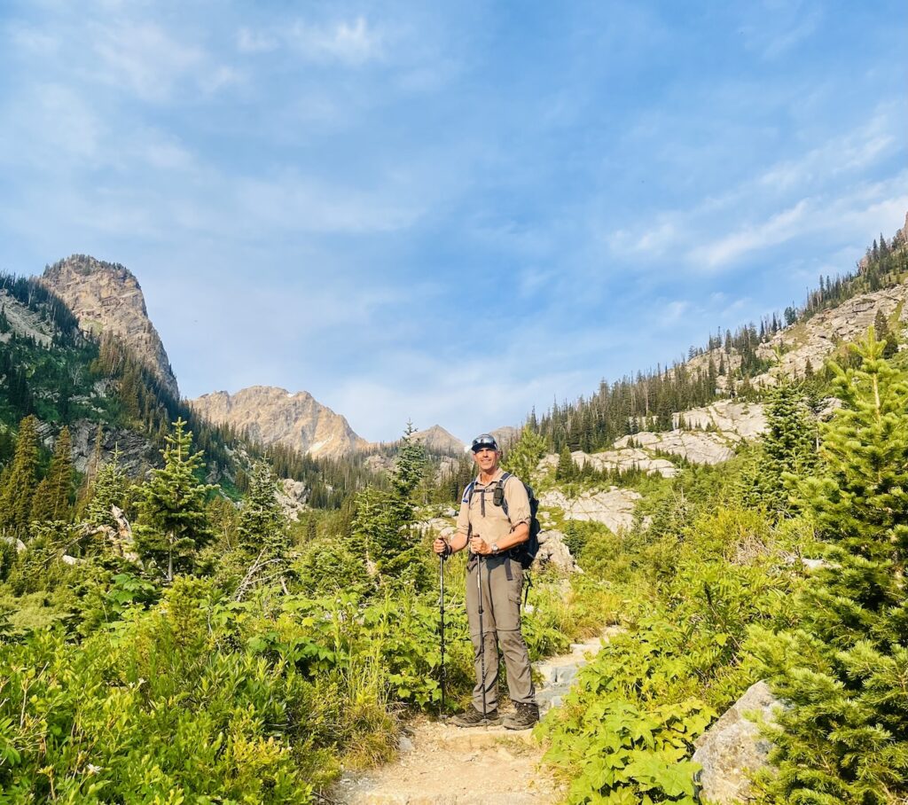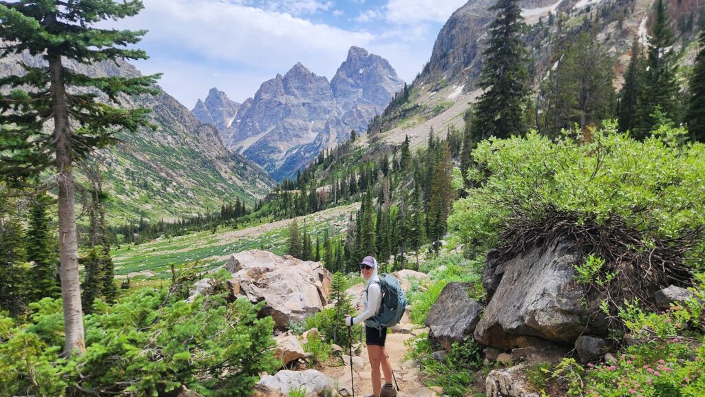 Our original plan was to camp at the North Rim for one night, hike 13 miles down the North Kaibab Trail to Phantom Ranch, stay for two nights, then climb out via the steep 7-mile South Kaibab Trail. But on July 4th, a lightning-sparked wildfire broke out on the North Rim. It’s still burning and our Phantom Ranch stay was rescheduled. Disappointed, we turned to my trusty National Parks guidebook and found the author’s highest-rated hike in the Grand Tetons: Paintbrush Canyon to Cascade Canyon Loop.