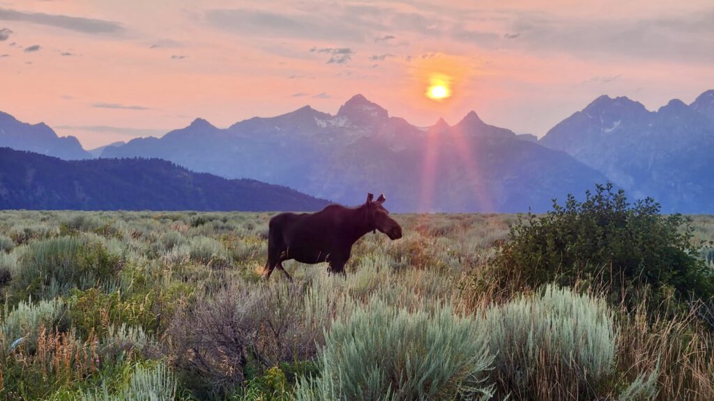 As we headed back to the trailer, we saw an amazing sunset with a moose!
